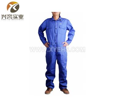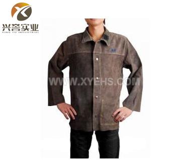 AP2530藍色阻燃布配炭啡色皮袖焊服