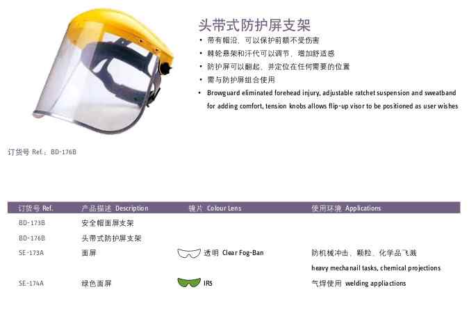 名稱:霍尼韋爾BD-176B半頭盔面屏支架(SE-173A,SE-174A可選面屏)