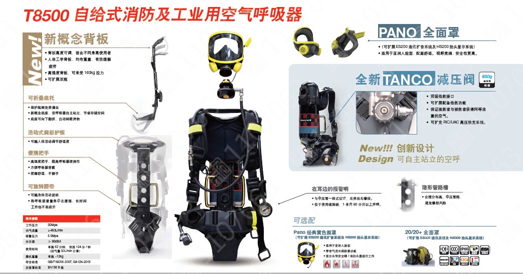 T8500 系列 SCBA2005XT:T8500 他救呼吸器 Pano面罩/6.8L Luxfer氣瓶