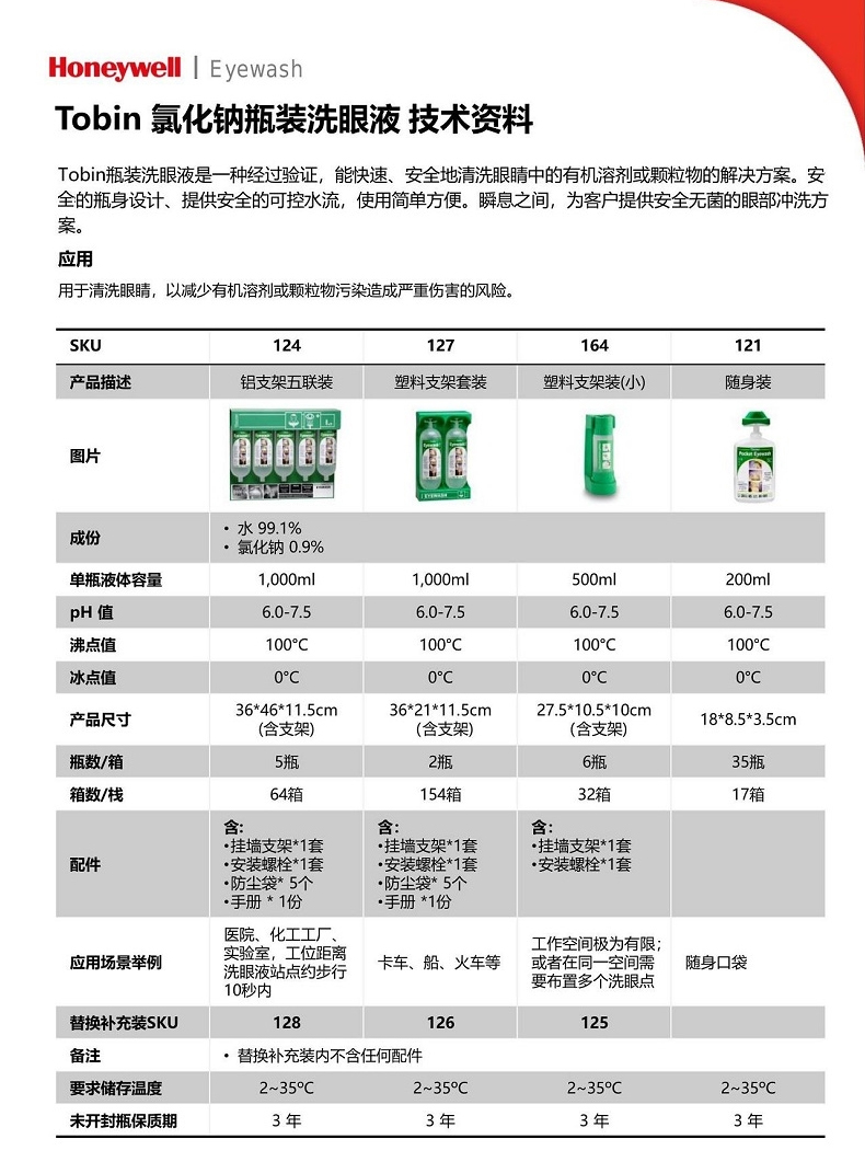 產(chǎn)品名稱:霍尼韋爾125 Tobin洗眼液補充裝 氯化鈉溶液 500ml